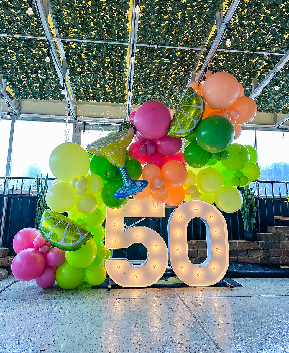 Customize and light up your celebrations with high-quality marquee letters and numbers! Our letters and numbers are 3 feet tall and securely installed for safety. Available a la carte OR add balloons for even more fun!
